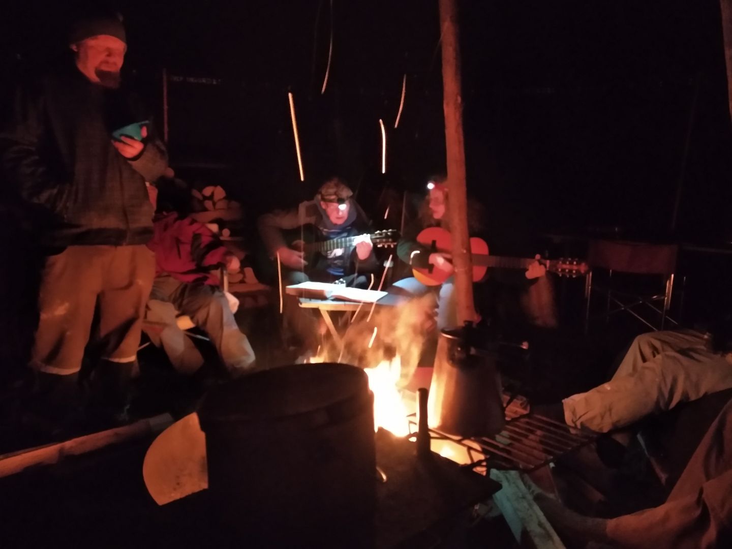 Traditionell fand am ersten Janurwochenende mal wieder das Winterlager auf dem Mühlenberg statt. Die Stürme und der Regen der vergangenen Tage ließen nach, so dass es kein allzu großes Problem war, zwei große Jurten aufzubauen. Bei loderndem Feuer und ausgezeichnetem Essen verbrachten die hart gesottenen Mitglieder und Pfadis eine schöne Zeit mit Liedern und Geschichten. Die Wiese war zwar nass, aber mit gutem Schuhwerk nicht wirklich ein Thema. Und für das "Geschäft" gab es einen überdachten Klostuhl, gebaut und gesponsert von Ulf. Was für ein Leben in Luxus, Saus und Braus :)