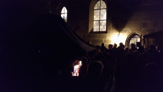 Am Heiigen Abend, 24.12.17 um 22 Uhr wurde die Christmette in Münster von Dekan Uwe Altenmüller gehalten. Zahlreiche Kirchgänger verweilten im Anschluss vor der Kirche, um das Friedenslichts aus Bethlehem zusammen mit einem heißen Tschai (Tee-Punschgetränk) bei den Unterroter Pfadfinderinnen und Pfadfinder (VCP Unterrot) in Empfang zu nehmen. Gemütlich unterhielt man sich noch eine ganze Weile und hielt sich mit Tschai warm. Eine schöne Tradition!