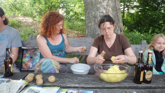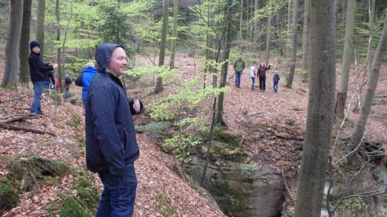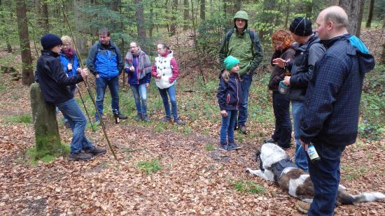 Der erste Tag des Wonnemonats wurde dann mit einer Wanderung begonnen. Vom Pfadihaus ging es hoch auf den Kieselberg. Hier luden uns Esel und Pfauen zu einer kurzen Rast ein. Weiter ging es in den Wald. Hier bewiesen die jüngeren Wanderer echte Pfadfindereigenschaften, indem sie abseits des Wanderweges den "schönen Wappenstein" finden konnten. Der Rundweg führte weiter in Richtung Bröckingen und von dort aus wieder zum Pfadihaus. Trotz des Regenwetters konnte Dank unserer Grillhütte im Trockenen gegessen und Zeit am Lagerfeuer verbracht werden.