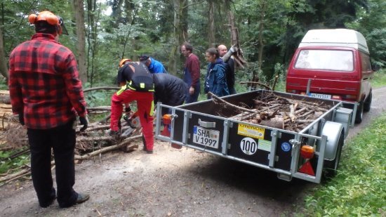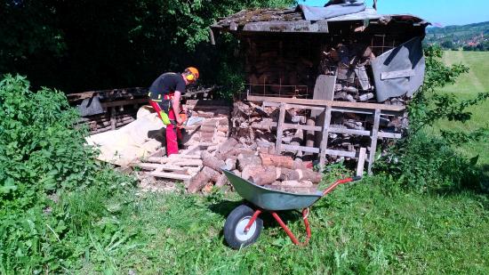 Das Pfadihaus wird mit Holz beheizt und die kalte Jahreszeit steht vor der Türe. Am Samstag, 9.9.17 war es mal wieder an der Zeit, sich um Feuerholz für das Pfadihaus zu kümmern. Zunächst wurde Astholz aus dem Wald oberhalb Brückingen gesammelt. Das Wetter war jedoch ungemütlich und die Ausbeute mau. So wurden ältere Zeltstangen am Pfadihaus zersägt und die Wiese gemäht. Ein zünftiges Vesper gab Kraft und die Arbeit hat sich gelohnt. Ein Dankeschön an die Helferinnen und Helfer!