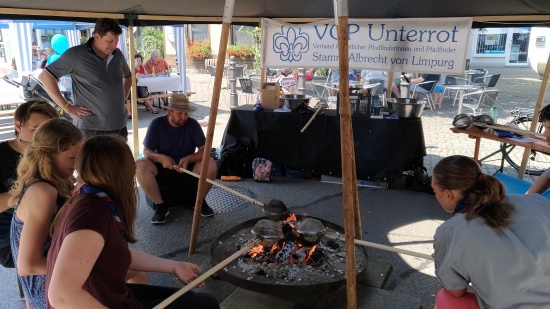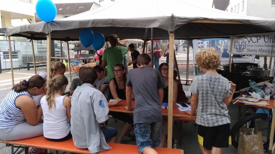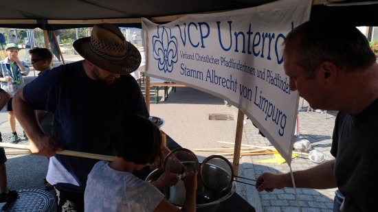 Die Pfadfinder beteiligten sich beim Gaildorfer Samstag am 08.07.17 und boten ein umfangreiches Programm für Kinder. Es gab Popcorn zum Selbermachen über dem Feuer und einen Spiele-Parcour mit sieben unterschiedlichen Spielen. Aber auch die Eltern konnte sich über die pfadfinderische Jugendarbeit informieren.