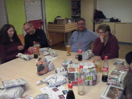 Zum Jahresabschluss trafen sich die Mitglieder des FöV im Pfadihaus. Auf dem Programm stand Gruschtwichteln, ... und das wurde ernst genommen! Je Teilnehmer/In wurden drei gut verpackte Wichtelgschenke mitgebracht. Mit einem Würfen wurden dann die Geschenke verteilt, jeweils bei der Würfelzahl 1 und 6 durfte ein Geschenk ausgesucht werden. Nach dem Auspacken ging es mit dem Würfeln weiter, bis zum Schluss der ein oder andere mehr oder weniger "Gruscht" bei sich gesammelt hatte. Es war auf jeden Fall eine riesen Gaudi.