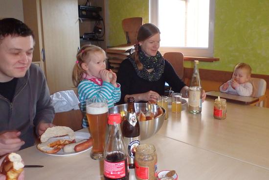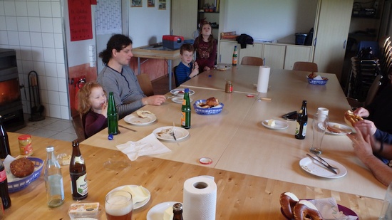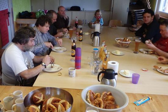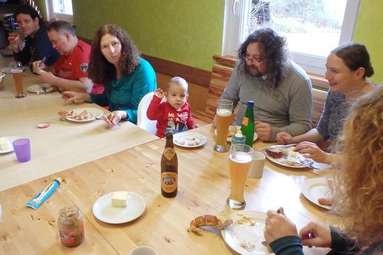 Zum traditionellen Weißwurstfrühstück am Sonntag, 10.04.16 trafen sich die FöV-Mitgleider mit Familien im Pfadihaus und liesen sich es sich schmecken.