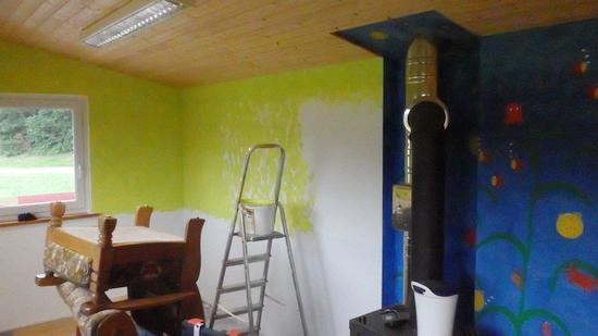 Nach über 10 Jahren wurde nun das Pfadihaus renoviert und ein neuer Energiespar-Kühlschrank angeschafft. Das Pfadihaus wurde im Jahr 2004 gebaut und 2005 eingeweiht. Die Bauweise hat sich sehr bewährt, denn es waren keine schwerwiegenden Reparaturen nötig. Allein an der Holzrampe am Eingang mussten die Trägebalken ausgetauscht werden. Am Äußeren wurden LED-Strahler angebracht und die Terrasse mit einem Hochdruckreiniger gereinigt. Innen wurden die Wände mit frischen Farben gestrichen bzw. in Tupftechnik aufgetupft. Das Ergebnis kann sich wirklich sehen lassen. Und wenn sich der dreitägige Einsatz wieder für die nächsten 10 Jahre gelohnt hat, sind wir mehr als zufrieden.