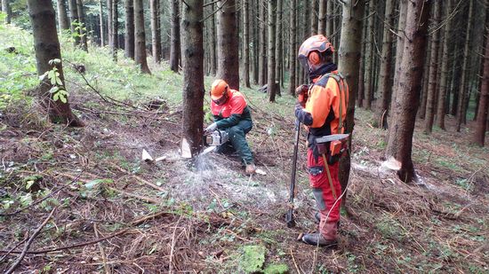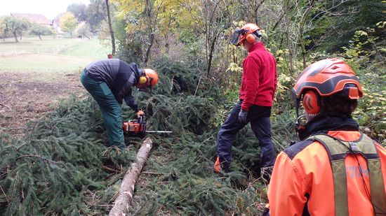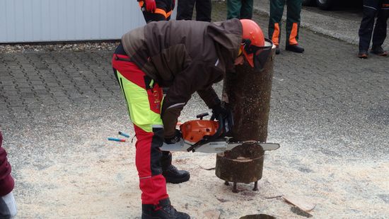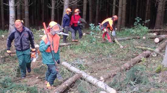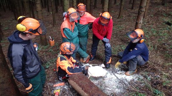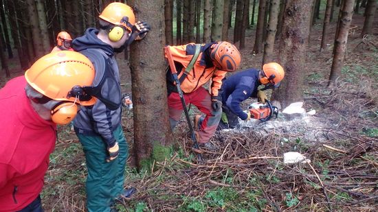 Zwölf Teilnehmerinnen und Teilnehmer des VCP Unterrot, VCP Oberrot und deren Fördervereine haben am 21.+22.10.16 erfolgreich einen Motorsägengrundlehrgang absolviert. Dabei ist die Theorie mindestens genauso wichtig, wie das Arbeiten mit der Motorsäge. Denn im Mittelpunkt steht immer die Sicherheit für Mensch und Leben. Aber auch das Verhalten in der Natur und der Umgebung muss rücksichtsvoll und aufmerksam sein. So wurde zunächst am Probe-Stamm geübt, bevor es in den Wald bei Frickenhofen ging. Dort hatte jeder die Gelegenheit, einen Baum unter den Augen eines erfahrenen Forstwirtschaftsmeisters fachmännisch und sicher zu fällen. Auch das Aufarbeiten des gefällten Stammes, also das Entasten und in Stücke sägen gehört zu den Arbeiten im Wald dazu. Rundum ein interessanter Lehrgang mit großem praktischen Nutzen im Umgang mit der Motorsäge - mit Sicherheit!