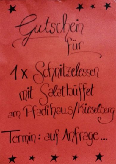 Zum Dank für die Unterstützung der Jugendarbeit des VCP Unterrot wurden die Mitglieder des Fördervereins am 29.10.16 zum Schnitzelessen ins Pfadihaus eingeladen. Die Mitarbeiter des Stamm Albrecht von Limpurg bereiteten den Anwesenden einen schönen Abend mit Salatbuffet, panierten Schnitzeln und einem Aperitif. Der Gutschein für das "Schnitzelessen" wurde bereits letztes Jahr an der Weihnachtsfeier an den Förderverein verschenkt. Mit dieser Geste wurde das Engagagment der ehrenamtlichen Helferinnen und Helfer gewürdigt. Die Anwesenden hatten einen schönen und genussvollen Abend - herzlichen Dank an die Unterroter Pfadis!