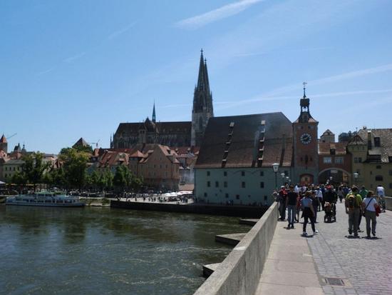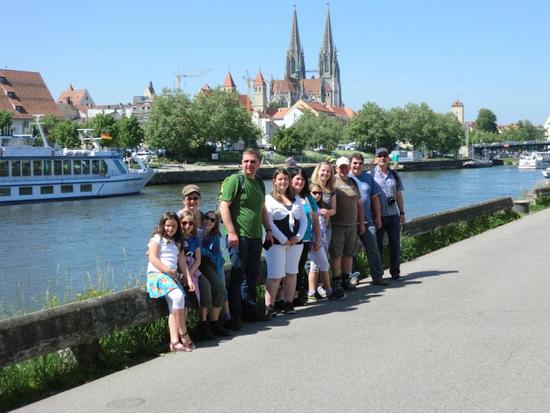 Regensburg wird, bedingt durch seine vielzähligen und in Deutschland einmaligen Geschlechtertürme, die so sonst nur in Italien zu finden sind, und die schmalen verwinkelten Gassen in der Altstadt nicht zu unrecht auch als „nördlichste Stadt Italiens“ bezeichnet. Zudem ist die Stadt Regensburg seit 2006 UNESCO-Weltkulturerbe. Während der vier Tage waren die 14 FÖV-Freizeit-Teilnehmer, 9 Erwachsene und 5 Kinder, untergebracht in der „Burg Regeldorff“, einem Pfadfinder-Freizeitheim mit großzügig angelegtem Freigelände, ca. 10 km nördlich der Altstadt. Die „Burg Regeldorff“ auf dem Gelände einer ehemaligen Schlossgärtnerei wird seit 1984 von Regensburger Pfadfindern bewirtschaftet. Martin Kolmann, der selber in Donaustauf bei Regensburg aufgewachsen ist und seit mehreren Jahren aktives Mitglied im Freundes- und Förderkreis des VCP Unterrot e.V. ist, hat die Freizeit geplant und organisiert. Auf dem Programm standen bei nahezu durchgehend strahlendem Sonnenschein unter anderem ein Besuch der Walhalla, eine Schifffahrt durch den Donaudurchbruch von Kelheim nach Kloster Weltenburg und eine Stadtführung durch Regensburg, die speziell die Kinder zum Mitraten und Mitmachen animiert hat. Wenn man schon mal in Regensburg ist, durften natürlich auch eine Strudelfahrt und ein Besuch in einem der schönen Biergärten mit Blick auf die Steinerne Brücke und den Regensburger Dom nicht fehlen!