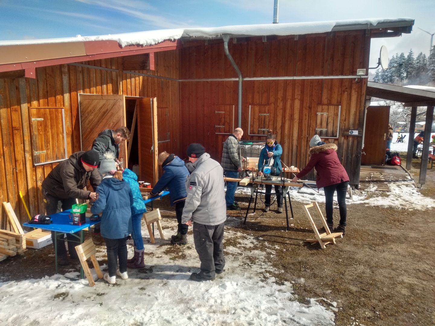Bei Sonnenschein aber kühlen Temperaturen war am Pfadihaus einiges los, der Andrang war groß! Die Pfadis bauten sich Sitzgelegenheiten für das Lagerfeuer. Rund ums Pfadihaus wurde gesägt, gebohrt, geschraubt und sich gegenseitig geholfen. In ein paar Stunden entstanden fast 20 Klappstühle fix und fertig für die Benutzung. Eine tolle Aktion, Respekt!