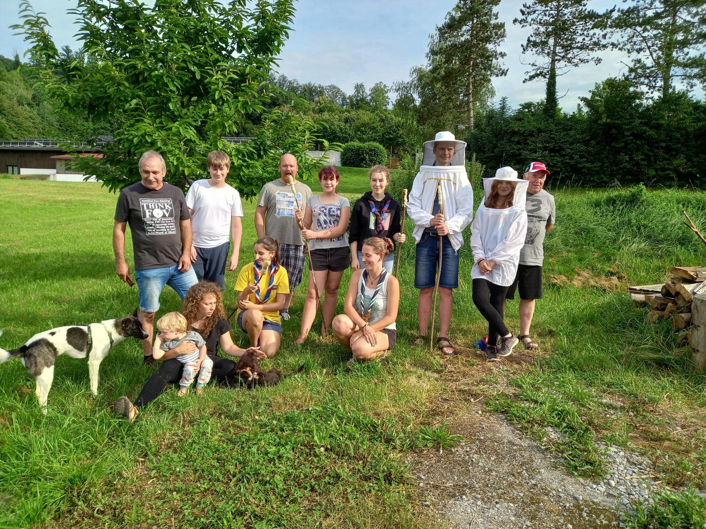 Nachdem das Imkern vor zwei Jahren am Pfadihaus gestartet ist, war es an der Zeit alle Pfadis und Mitglieder des Fördervereins umfassend über die Honigbienen und Wildbienen sowie die Tätigkeiten des Imkers zu informieren. An drei Stationen konnten sich die Teilnehmenden über die Entwicklung des Bienenvolkes erklären lassen, die Utensilien für das Imkern kennenlernen und natürlich am Bienenstand über das Arbeiten mit den Bienen vorführen lassen. Vielen Dank an den Bienenverein Gaildorf für die Leihgabe des Bienenschaukastens.