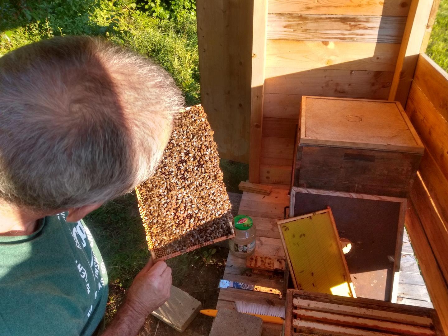 Auch unsere Bienen auf dem Kieselberg am Pfadihaus waren davon betroffen. Die Wirtschaftsvölker hatten mit dem Überleben zu kämpfen, die Ablegerbildung neuer Völker misslang. Zum Glück half uns Ernst Roll mit zwei nachgezüchteten Königinnen aus, so dass wir jetzt fünf Völker am Bienenstand haben. Die Varroa-Behandlung ist im September bitter nötig, um das Überleben der Völker zu gewährleisten. Danach wird mit dem Auffüttern für die Winterzeit begonnen.