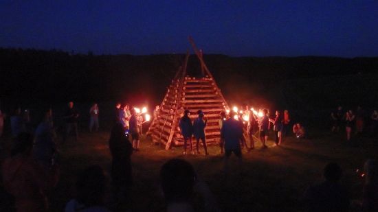 Mit der Dämmerung wurde das Johannisfeuer entfacht. Ein toller Moment, eine tolle Atmosphare und tolle Pfadis!
