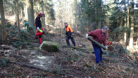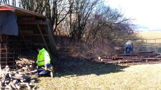 Damit das Pfadihaus beheizt werden kann, wird Brennholz benötigt. Bei einer Samstagsaktion wurde zum einen aus dem Wald starkes Holz entfernt, um Stolperfallen zu reduzieren, zum anderen aber Brennholz für das Pfadihaus geholt.