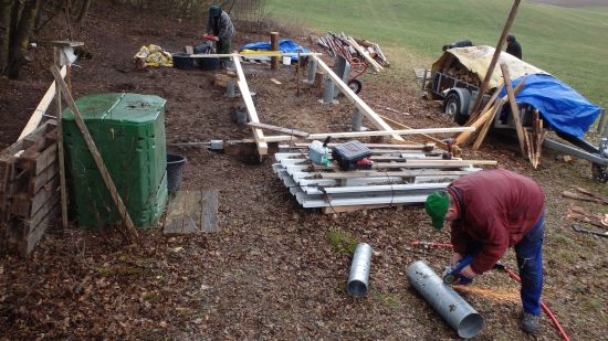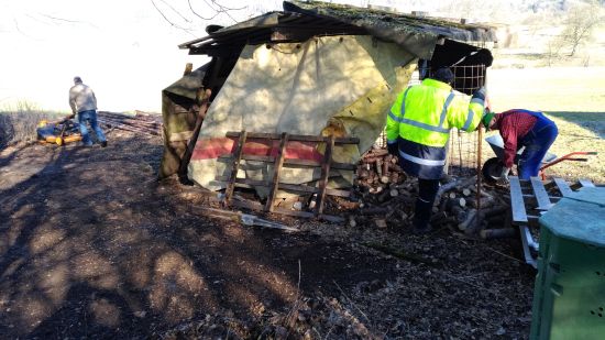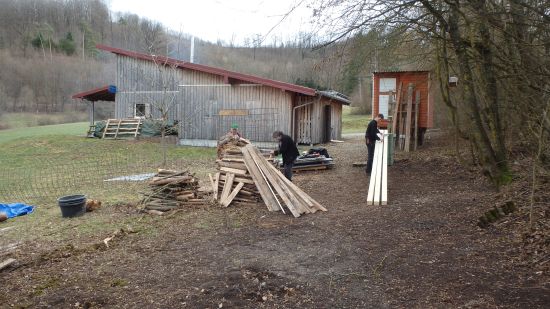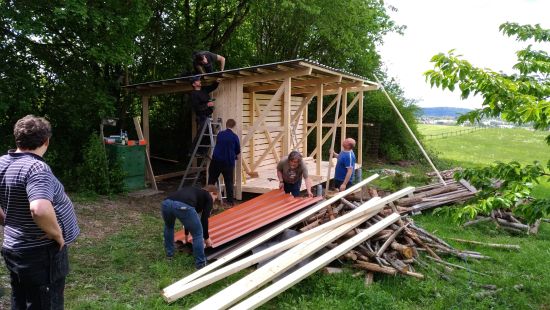 Das Pfadihaus wird ausschließlich mit Brennholz beheizt. Und dazu ist es notwendig, genug Brennholz zum Trocknen lagern zu können. Seit vielen Jahren hatten wir hierzu ein Provisorium aus Baustahlmatten und einem darüberliegenden Regenschutz. Es war jedoch äußerst schwierig, Holz aus dem Verschlag herauszuholen oder neues Holz einzulagern. Dies hatte zur Folge, dass Holz über 10 Jahre unangetatstet auf seine eigentliche Verwendung wartete.