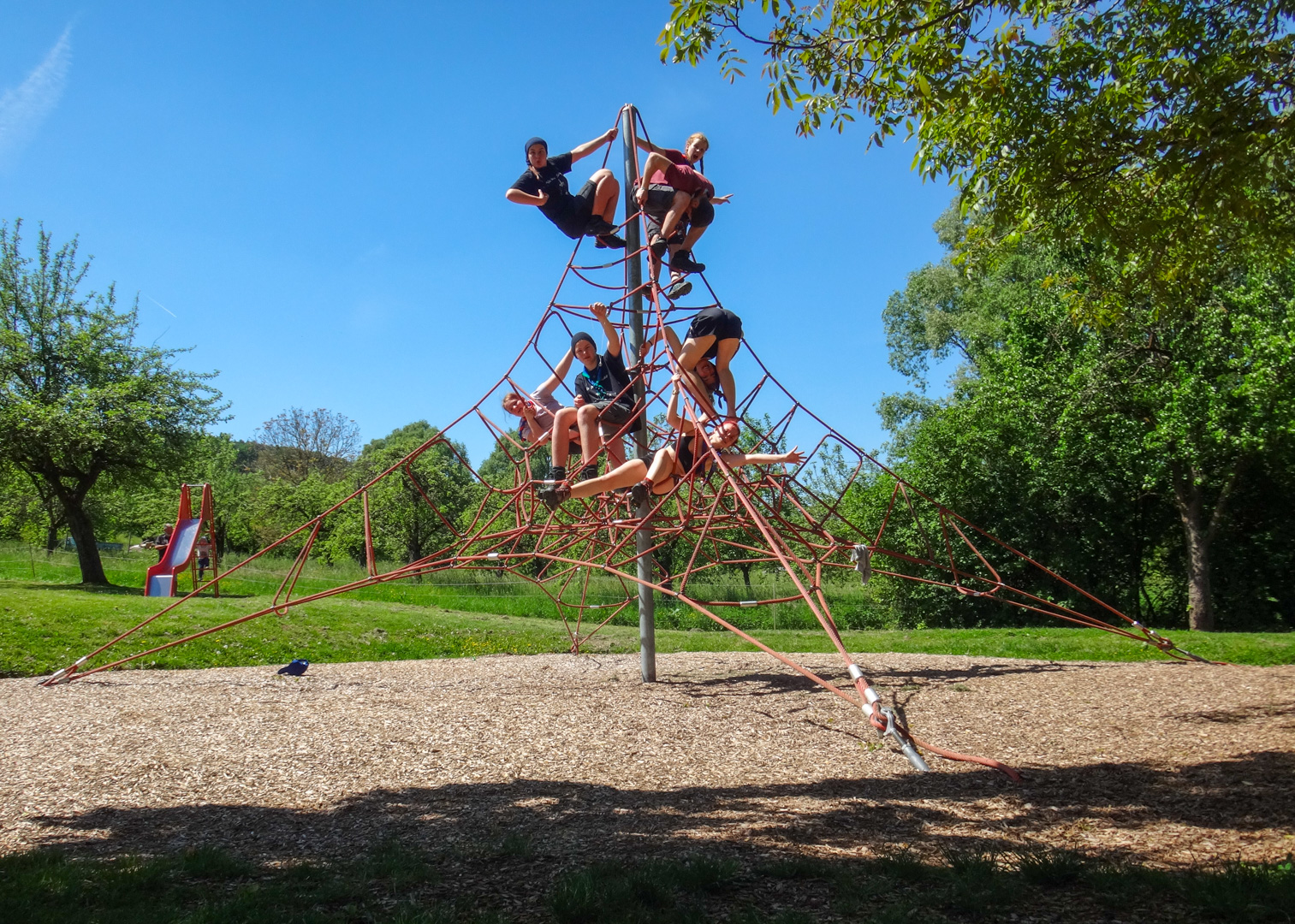 Vom 03.-07.06.2022 veranstalteten der VCP Unterrot und der VCP Herlikofen gemeinsam ihr Pfingstlager unter dem Motto „Zeitreise“ am Pfadihaus auf dem Kieselberg. Von ihrer Neugier und ihrem Entdeckungsdrang gepackt, folgten die Pfadfinder einem verrückten Wissenschaftler in seine neuste Meisterkreation: eine Zeitmaschine. Allein am Aussehen dieses Hallodris hätten die Pfadfinder ahnen müssen, dass dies keine gute Idee war. Und so landeten sie aufgrund der defekten Zeitmaschine im alten Ägypten, wo sie von einer Pharaonin und ihrer Baumeisterin kurzerhand versklavt wurden. So wurden am ersten Tag gebührliche Pyramiden (auch bekannt als Lagerbauten) gebaut und Ersatzteile für die Reparatur der Zeitmaschine spielerisch aus dem Nil gefischt. In der Hoffnung wieder in die Gegenwart zurückkehren zu können, stiegen die Pfadfinder erneut in die Zeitmaschine… landeten dieses Mal allerdings im alten Griechenland, wo sie in drei Gruppen an den olympischen Spielen antreten mussten. Zu den olympischen Disziplinen zählten unter anderem ein Schubkarrenrennen, ein Blasrohrwettstreit und ein Apfelwettlauf. Noch erschöpft von den sportlichen Einheiten des vorherigen Tages, stiegen die Pfadfinder erneut in die Zeitmaschine und reisten in die Steinzeit. Dort bastelten sie steinzeitliche Werkzeuge, erlernten neue Knoten oder stellten eine Salbe gegen Brennnesseljucken aus Spitzwegerich her. Zum Glück konnten sie die benötigten Ersatzteile für die Zeitmaschine in der Steinzeit finden, um pünktlich zum Lagerende wieder in der Gegenwart anzukommen.