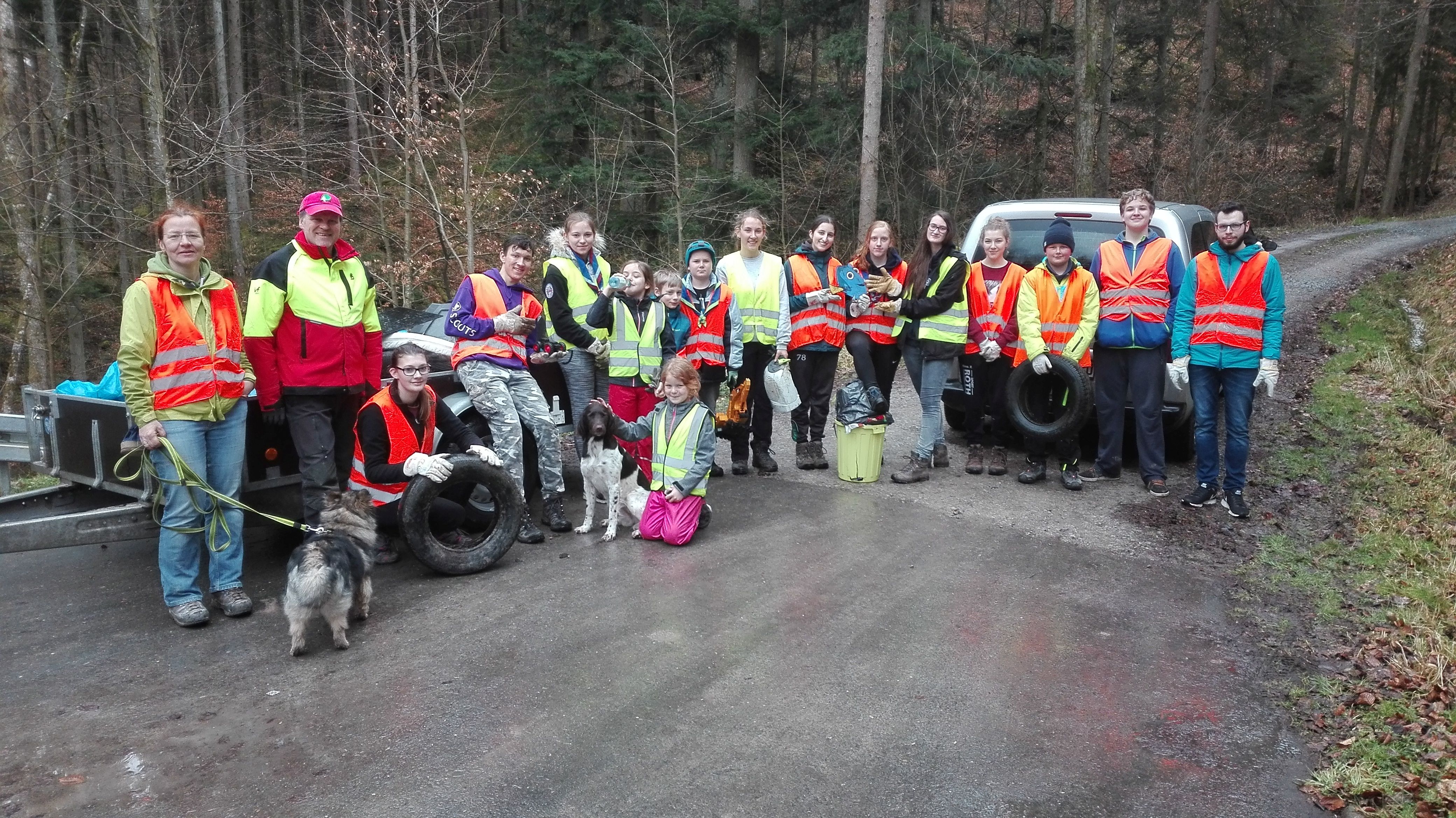 Vor allem dort, wo kaum jemand den Unterschied bemerken wird, sammelten die Unterroter Pfadfinder mit Hilfe von Förster Stahl am Samstag, den 09.03.18, zwei große Anhänger voll Müll, der rücksichtslos weggeworfen wurde.